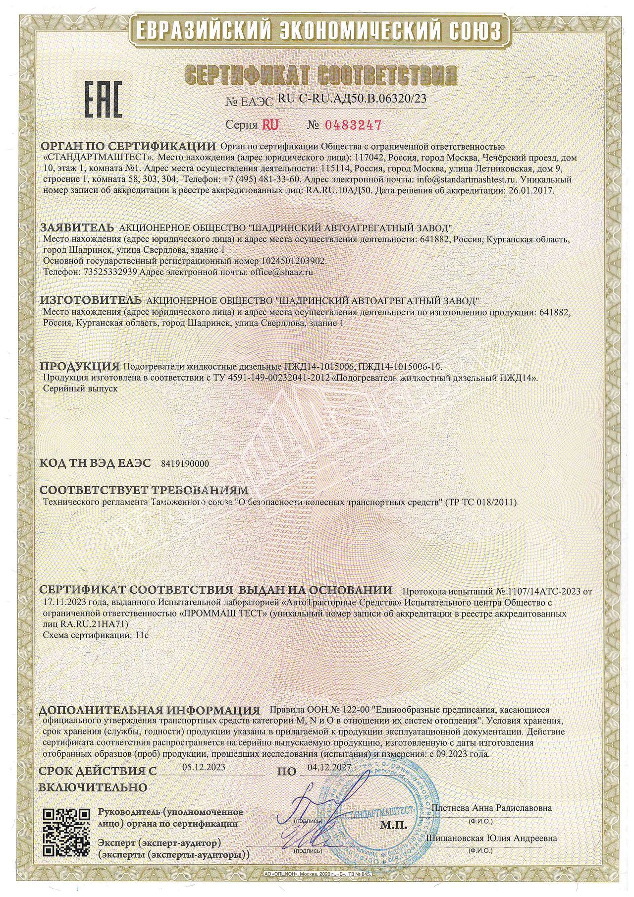 Подогреватель жидкостный предпусковой