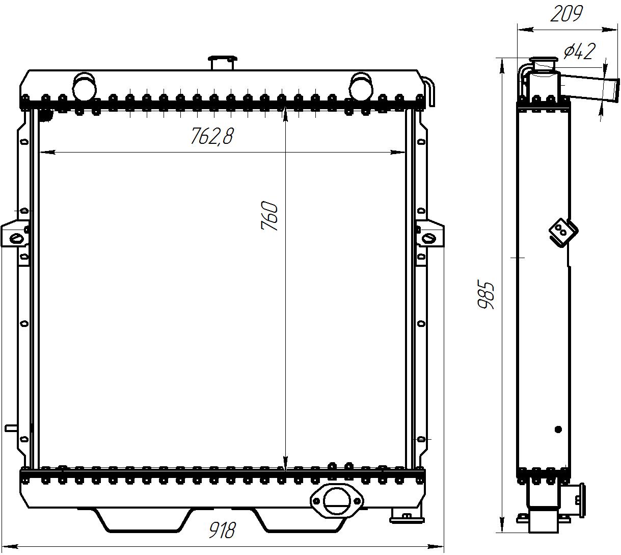 Радиатор состоит из латунных бачков с патрубками и трубчато-ленточного остова, образованного медными охлаждающими пластинами, латунными плоскоовальными охлаждающими трубками и крышками (опорными пластинами).
