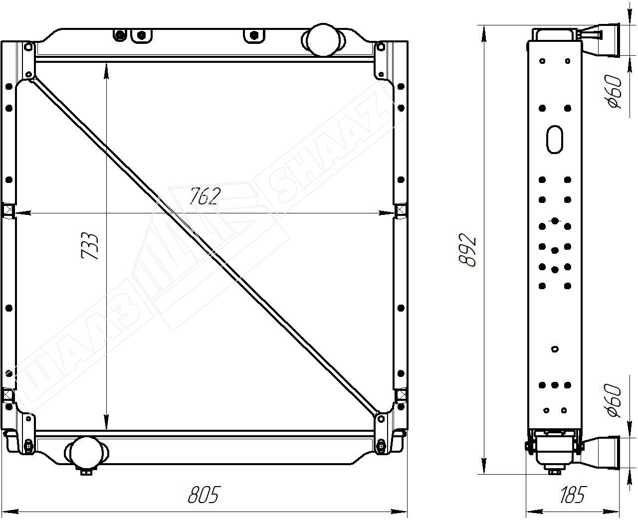 Радиатор состоит из алюминиевых бачков с патрубками и трубчато-ленточного остова, образованного плоскоовальными алюминиевыми сварными охлаждающими трубками (их поверхность заранее покрыта припоем необходимым для пайки), охлаждающими пластинами и опорными пластинами (крышками).