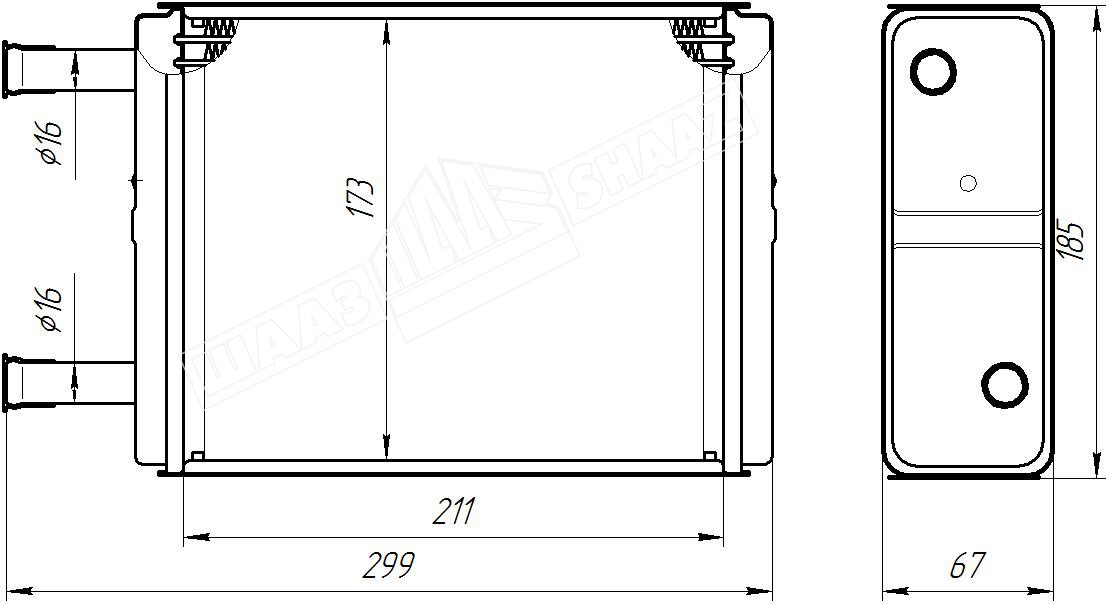 Радиатор состоит из латунных бачков с патрубками и трубчато-ленточного остова, образованного медными охлаждающими пластинами, латунными плоскоовальными охлаждающими трубками и крышками (опорными пластинами).