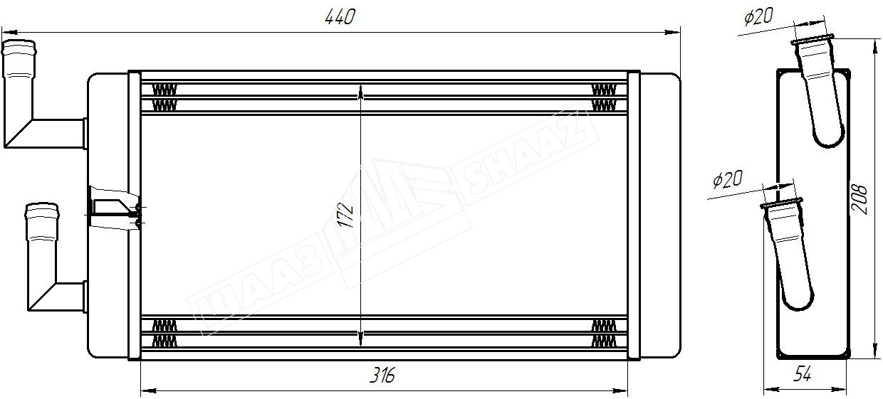 Радиатор состоит из латунных бачков с патрубками и трубчато-ленточного остова, образованного медными охлаждающими пластинами, латунными плоскоовальными охлаждающими трубками и крышками (опорными пластинами).